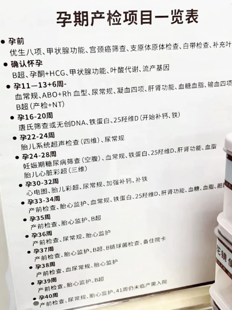 孕期产检项目一览表